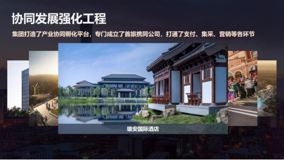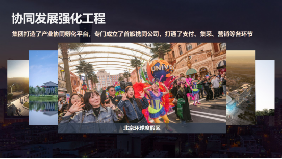 三是协同开展强化工程。首旅集团拥有丰富的业态、庞大的管理架构和众多的变革企业,对于我们来说,协同开展是永恒的命题。在集团内部协同方面,集团打造了产业协同和孵化平台,还专门创建了首旅协同公司,顺利获得支付、集采、营销等各个环节进一步整合了内部资源。同时,集团以服务北京城市副中心的功能建设为起点,累计投资建设了环球影城度假区、首旅集团总部大厦,以及“颐和Live”等重点项目,并加强在京津冀文旅领域的战略合作,与天津文旅集团和河北文旅集团签署了战略合作协议。同时,我们也深度参与了雄安新区的文旅建设。